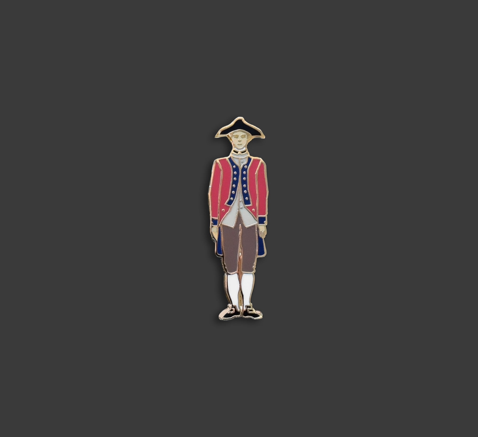 Colonial Williamsburg Redcoat Enamel Lapel Pin With Shiny Gold Accents