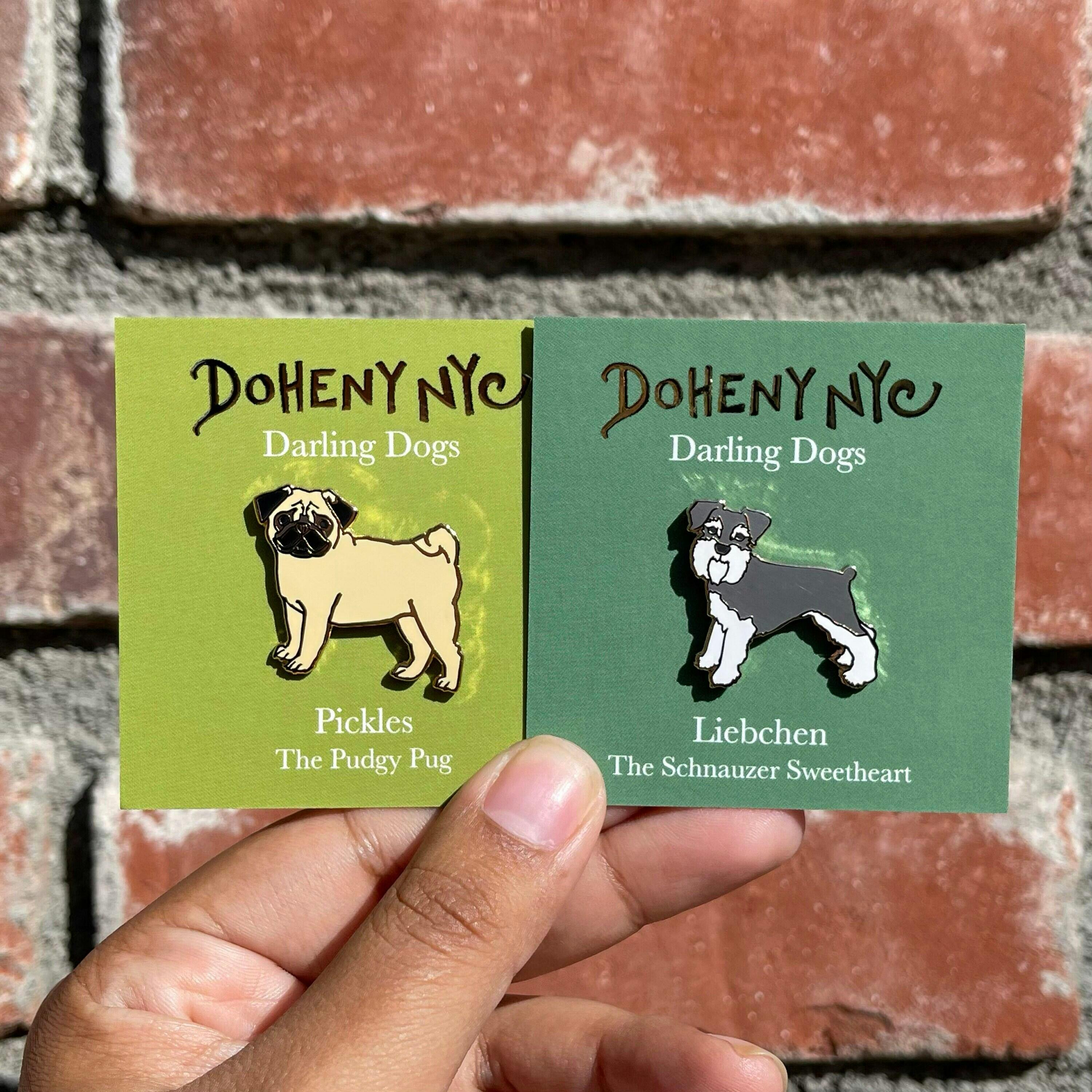 Elevate your accessory game with the Elegant Pug Enamel Lapel Pin, a stunning piece crafted by the renowned Doheny NYC. This luxurious lapel pin features an intricate design that captures the playful essence of the delightful pug breed. Its hard enamel finish shines with a brilliant luster while the shiny gold accents add a touch of sophistication, making it the perfect embellishment for any outfit.