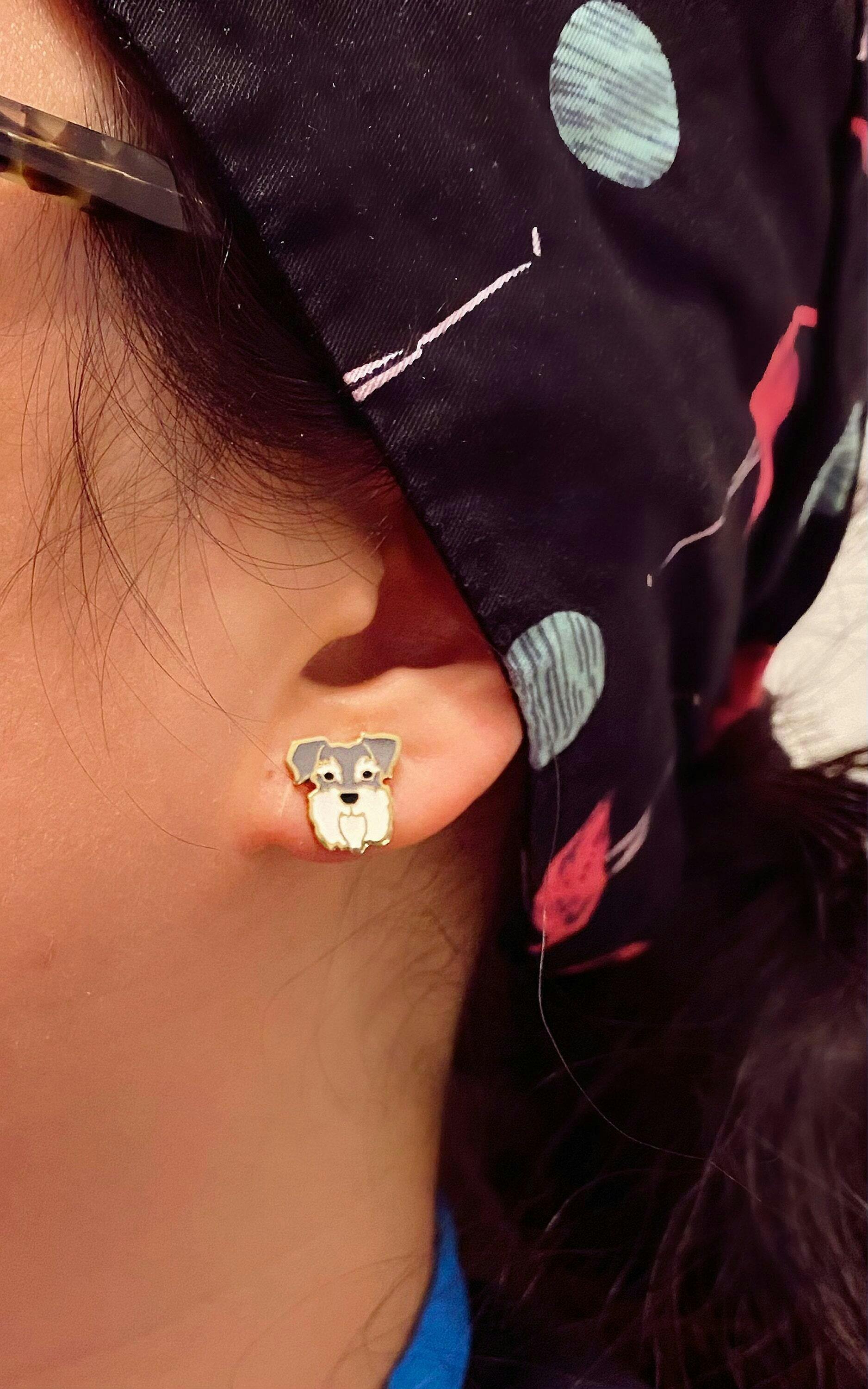 Schnauzer, Gray and White, Earrings with 14K Gold Accents