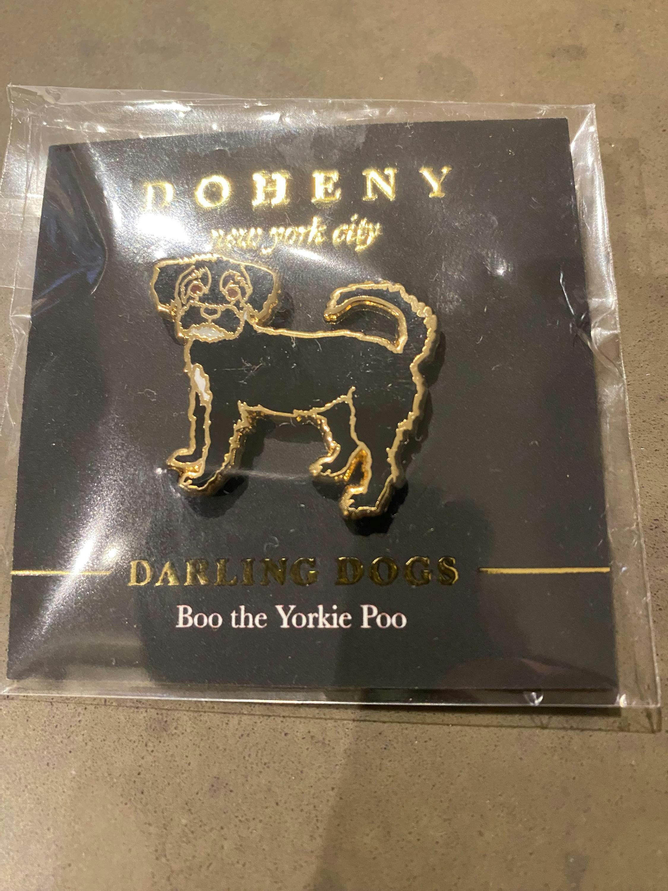 Elevate your style with the Yorkie Poo Hard Enamel Lapel Pin, featuring dazzling shiny gold accents. This exquisite pet accessory is the perfect way to showcase your love for your furry friend while adding a touch of elegance to any outfit.